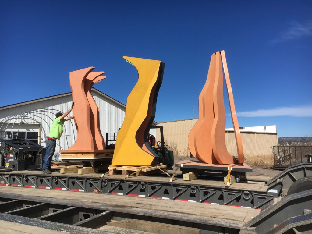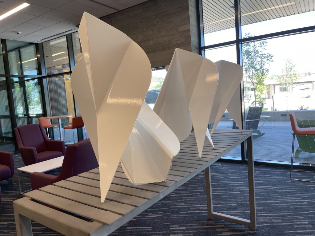 I have developed two main bodies of work: Large Scale Laminated Wood and Large Scale Folded Steel sculptures. Each piece is designed to integrate with architectural or public environments, addressing the context of the site and appealing to a diverse community.